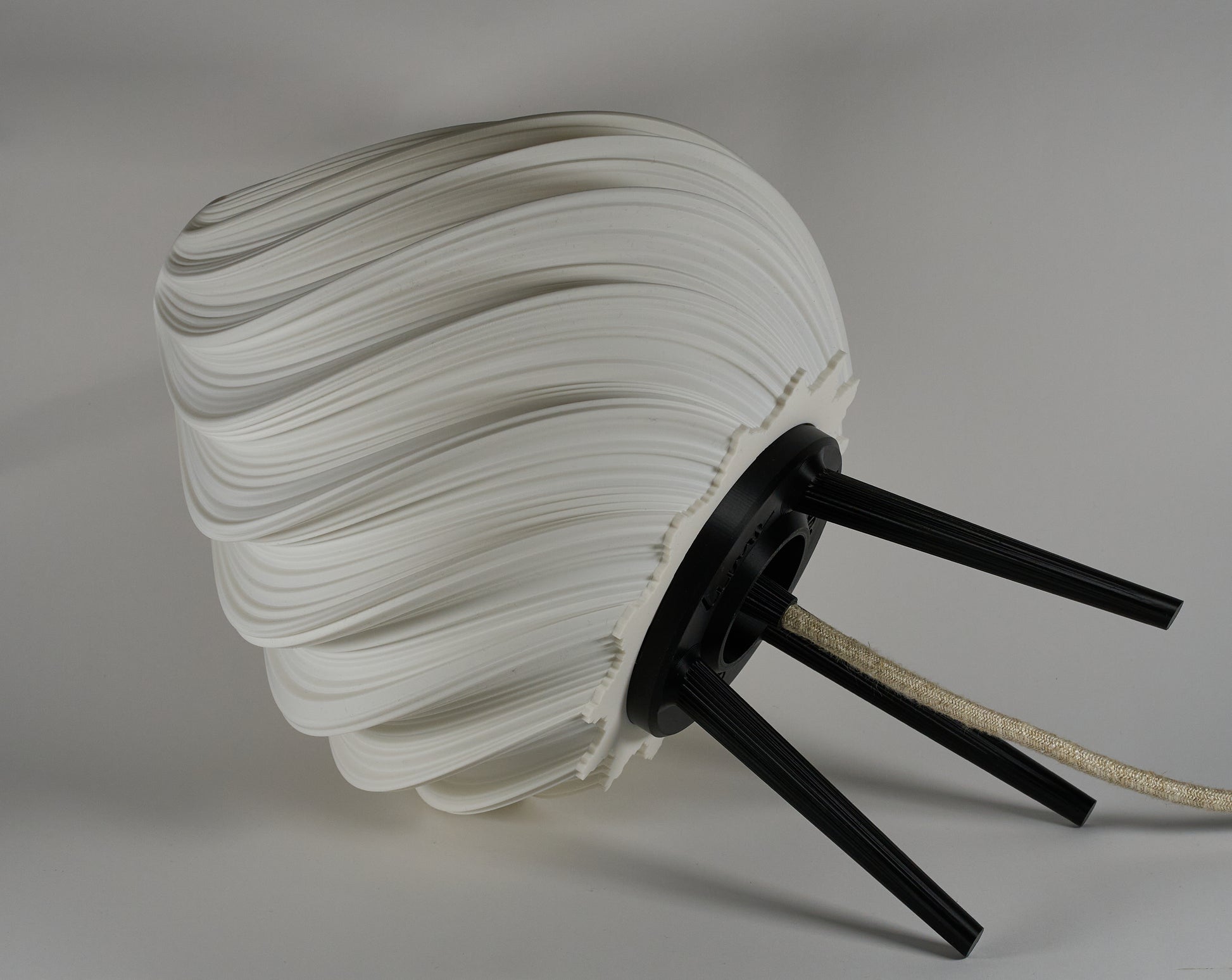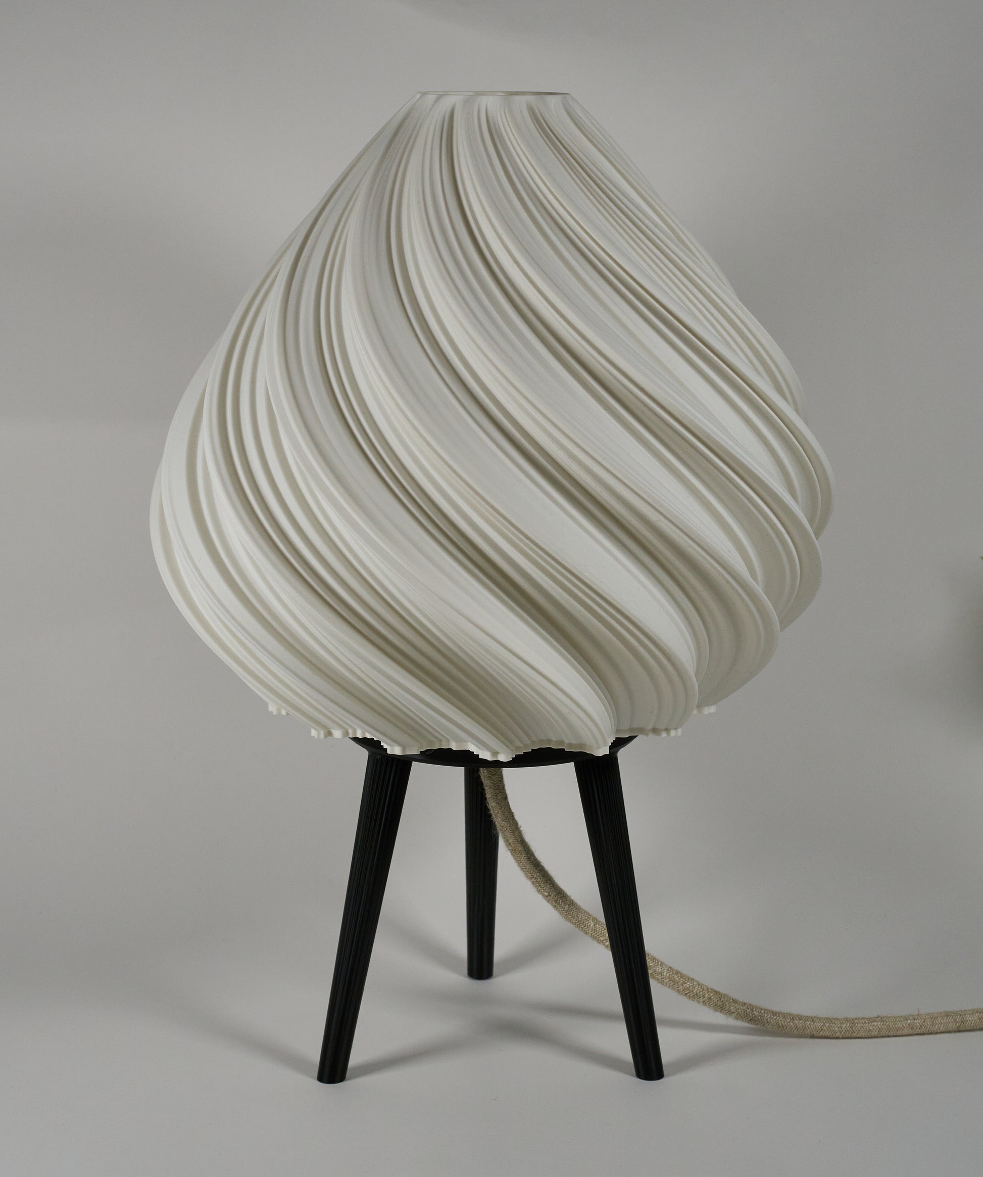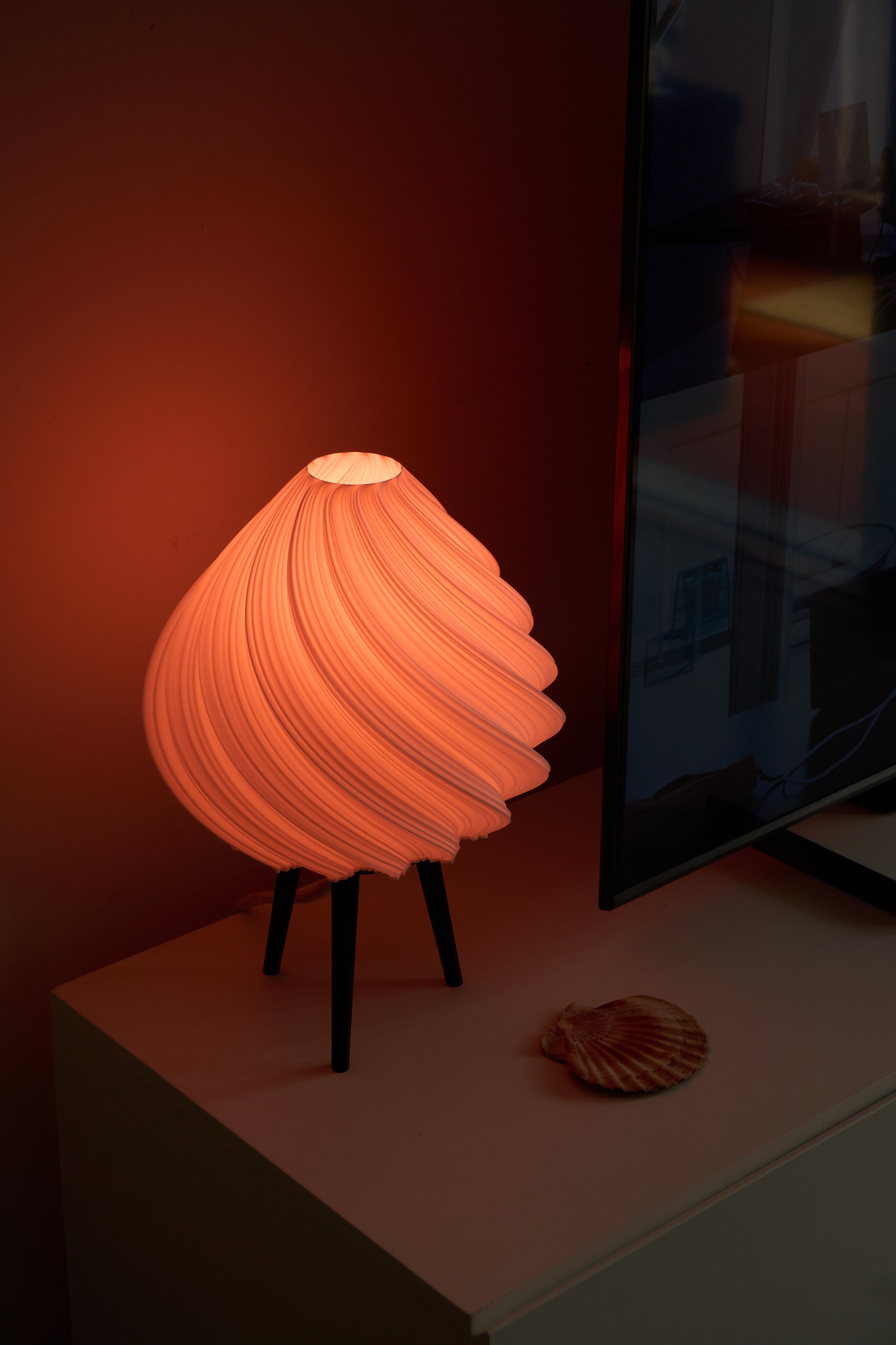 Ideal para mesas de apoio, estantes ou mesas de cabeceira. Queríamos criar um modelo que mantivesse a leveza e o caráter artesanal da Lume Waves, mas que também fosse compatível com smart bulbs, permitindo novas formas de interação com a luz. Por isso, neste modelo, optámos por não incluir o dimmer tradicional e adotámos um casquilho E27, ampliando as possibilidades de personalização luminosa (smart bulb recomendada, não incluída).